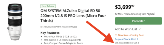 The new OM SYSTEM M.Zuiko Digital ED 50-200mm f/2.8 IS PRO lens starts shipping today: