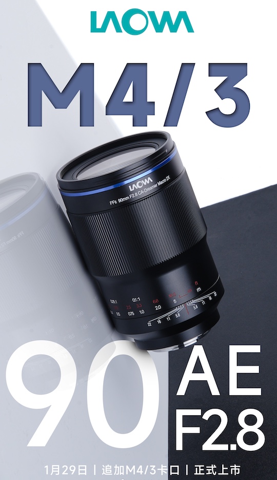 Venus Optics will release a new Venus Optics Laowa 90mm f/2.8 2X Ultra Macro APO lens for MFT next week (the lens already exists for other mounts). Additional informiton onthe Venus Optics Laowa 90mm f/2.8 2X Ultra Macro APO full-frame mirrorless lens can be found here: