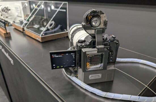 OM SYSTEMブースのフォーカスユニットと絞りユニット、あと手ぶれ補正ユニットが可視化できるデモ機メッチャ分かりやすくていいよ!