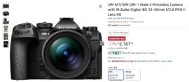 The OM System OM-1 Mark II camera with M.Zuiko Digital ED 12-40mm f/2.8 PRO II lens kit is now -27% off at Amazon (shipped and sold from Amazon): For reference, the same setup is priced at $2,699 at B&H: Related posts: Deal of the day: Olympus OM-D E-M10 Mark II camera with the M.Zuiko Digital … Continue reading Deal of the day: the OM System OM-1 Mark II camera + M.Zuiko Digital ED 12-40mm f/2.8 PRO II lens kit is now -27% off