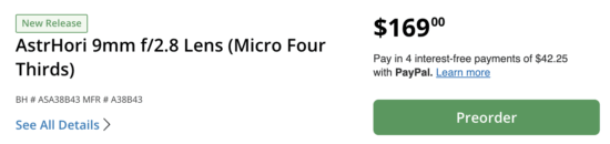 B&H Photo currently has a pre-order listing for a new, not yet announced AstrHori 9mm f/2.8 APS-C lens for Micro Four Thirds:
